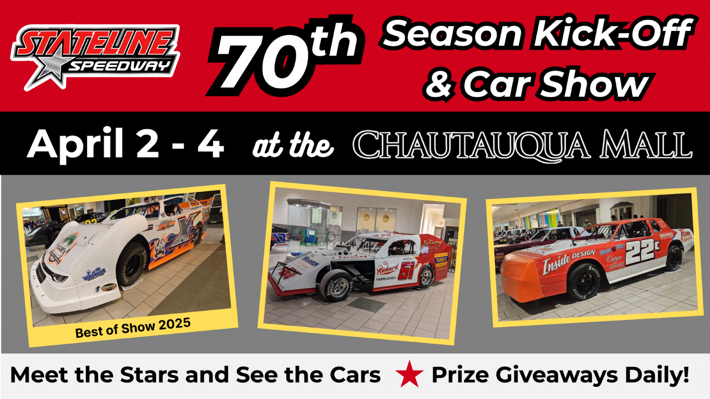 Stateline Speedway to Kick Off 70th Season with Stock Car Show at the Chautauqua MallStateline Speedway is bringing the excitement of opening night to the Chautauqua Mall for the official 70th Season Kick-Off and Stock Car Show—a three-day celebration …