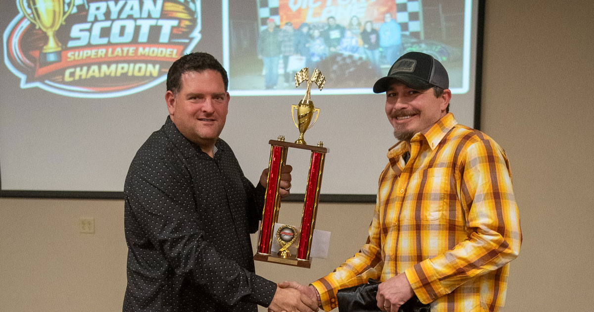 The night’s top honor went to Ryan Scott, who claimed the 2025 Super Late Model track championship. In a special moment during the ceremony, Scott presented a door from his championship-winning machine to long-time staff member Jamie McMillen, who is currently facing health challenges. McMillen has been a fixture of the Stateline staff for years, and the gesture drew a warm reception from the racing community.