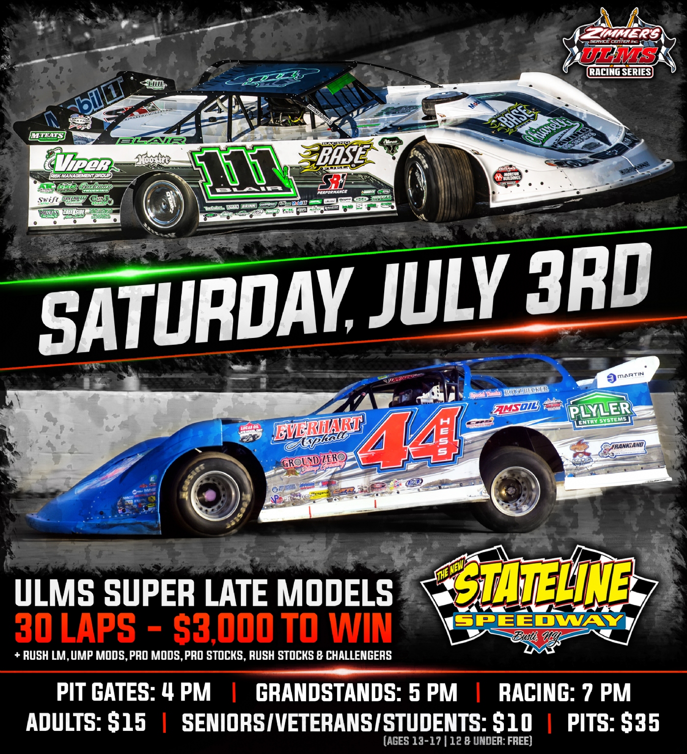 "SUPER 7 RACING" featuring the ULMS Super Late Model Series (30 Laps, $3,000 to win)!